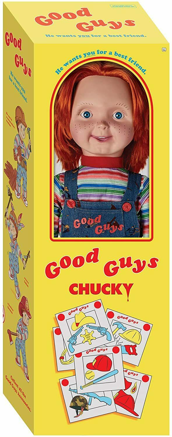 Child’s Play 2 – 30″ Good Guys Chucky Doll – Halloween Movie Prop Collectible. NEW IN BOX! FAST SHIPPING! Child’s Play 2 – 30″ Good Guys Chucky Doll – Halloween Movie Prop Collectible. Industry: Movies, Movie: Childs Play, Dimensions: 30″ H x 11″ W x 7″ D, Original/Reproduction: Reproduction, Features: Poseable arms, Height: 30 inches, Material: Plastic, vinyl, fabric, Country/Region of Manufacture: United States, Modified Item: No, Care: Spot Clean